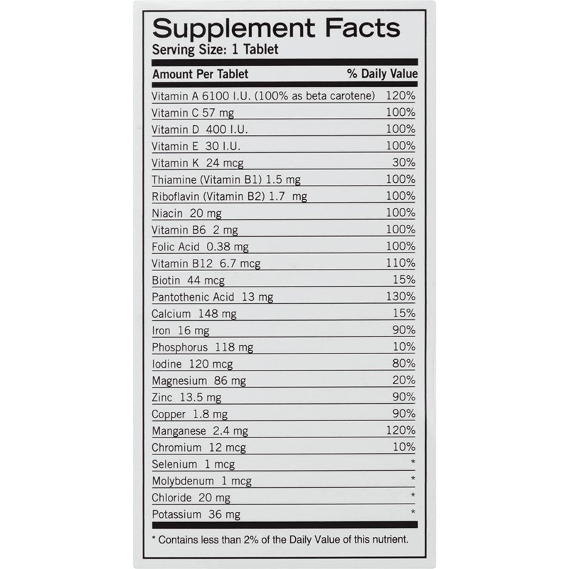 - MULTIVITAMIN TABLETS: Balance of 26 essential vitamins and minerals