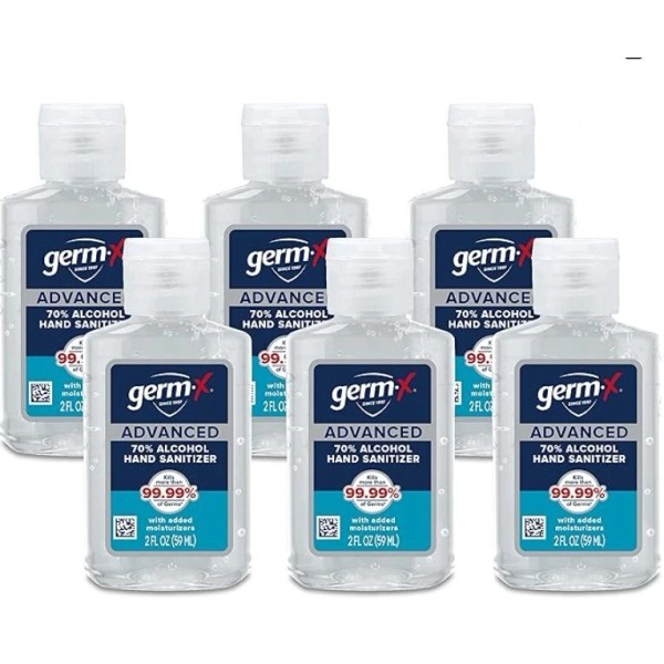 Germ-X - Advanced Hand Sanitizer 70% alcohol - Pack of 6 - 2 Fl Oz (Travel size)
