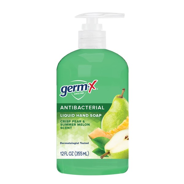 Germ-X Crisp Pear & Summer Melon Antibacterial Liquid Hand Soap, With Pump, 12 Fl Oz (Pack of 4)