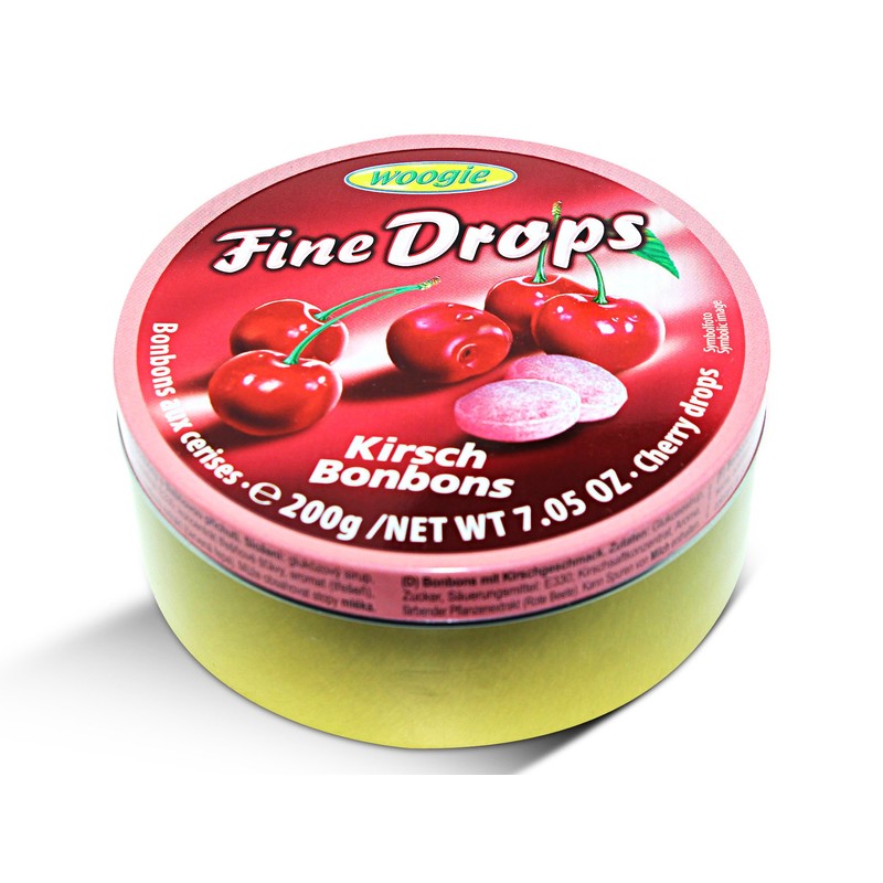Fine Drops Cherry Candy Tin 200gr. If you love cavendish & harvey or herman the german you will recognize the quality and attention to details in this Candies. welcome to the world of remarkable Rich Cherry fruit flavor brought to you by Woogie Fine Drops. The delightful taste packed in every drop will leave your taste buds excited, and leave you anticipating your very next taste. These small candies are packed full of an abundance of perfect cherry flavor. This slightly sweet yet tangy taste is sure to leave an imprint on your soul. This candy is perfect for every cherry lover, a bite sized treat that is sure to leave you breathless. A precisely round candy bursting with cherry flavor are perfect for you and your loved ones. Unless otherwise noted, each order bagged from bulk, boxed and ship from our Sarasota, FL facility. Produce by Woogie, Austria.