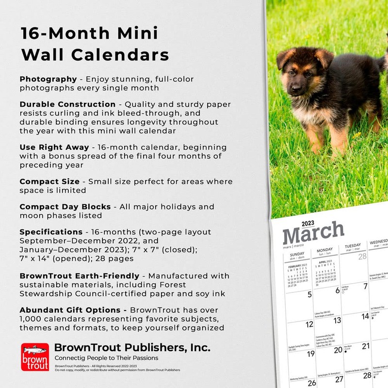 German Shepherd Puppies | 2023 7 x 14 Inch Monthly Mini Wall Calendar | BrownTrout | Animals Dog Breeds Puppy DogDays