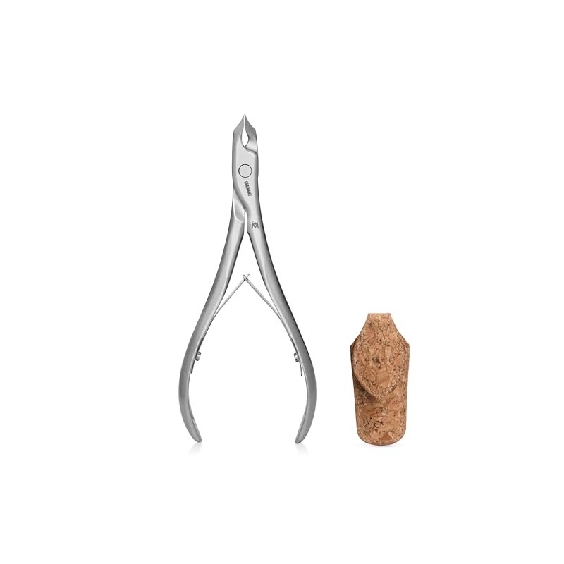 GERMANIKURE Tower Point Cuticle Trimmer - 1/4 Quarter Jaw Nipper - Ethically Made in Germany - Sharp FINOX Stainless Steel Professional Cuticle Remover in Cork Case – Manicure Tool, r143, 3mm