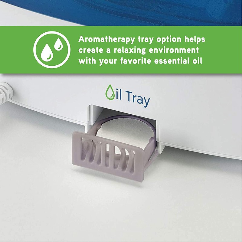 - AROMATHERAPY TRAY: The aromatherapy tray option helps create a relaxing environment with your favorite essential oil. Oils are not included. Create a better home environment and optimize your comfort with an ultra-quiet, soothing warm or cool mist