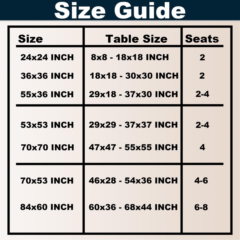 - Perfect Size: The tablecloth size is 36x36 inch (91x91cm). Fits small square tables(Not suitable for regular tables). Please confirm the size of your table. Recommended the size of the table is from 20x20 inches to 28x28 inches