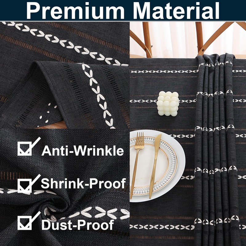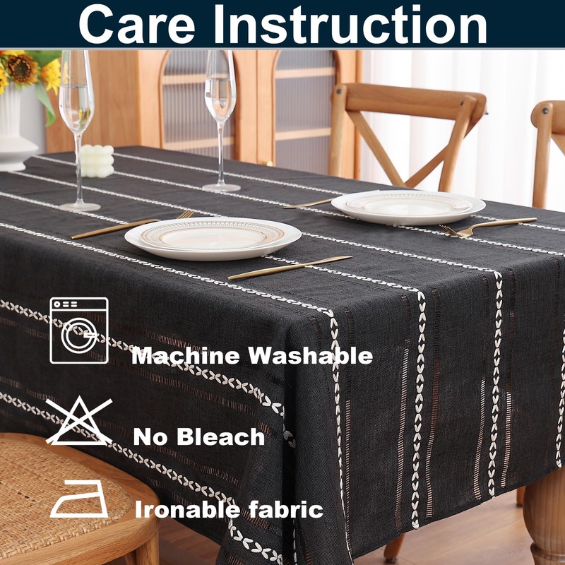 - Striped Embroidery and Cut-Out Design: Featuring elegant embroidered stripes and cut-out patterns, this tablecloth combines artistry with functionality. Available in classic colors like black, dark brown, brown, and gray to match any decor