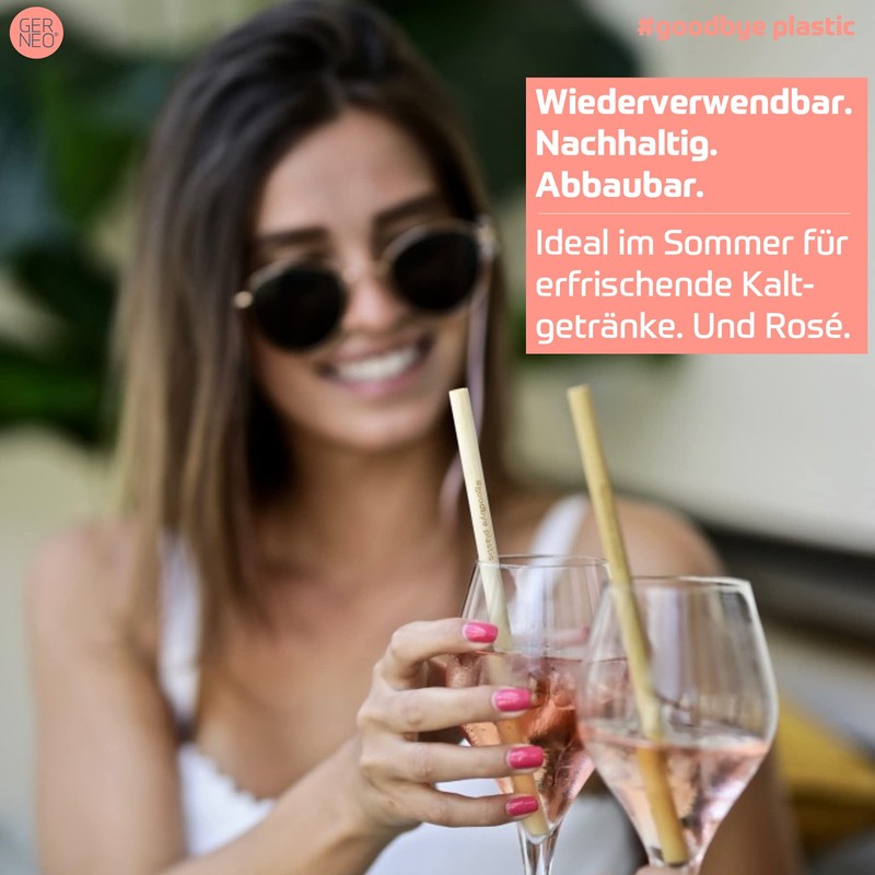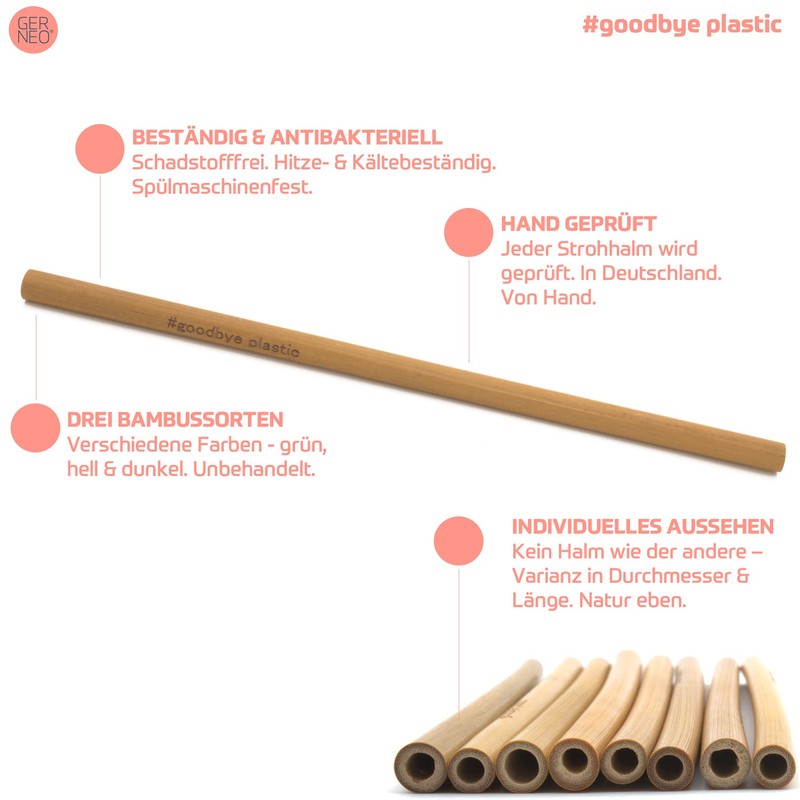 - Environmentally friendly and sustainable: our Gerneo branded straws are made of bamboo and a more tactile alternative to straws metal and glass, 100% biodegradable and obtained in organically grown bamboo plantations. A manual quality test is carried out in Germany.