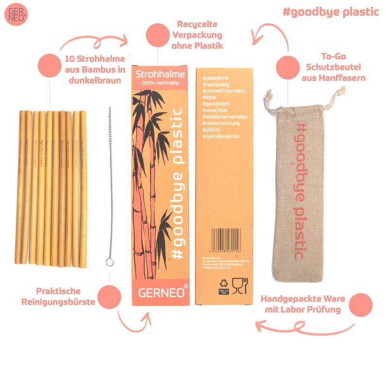 - ♻️ Donation promotion: by purchasing our reusable straws you help counteract the further formation of plastic waste. That's not enough - with every single sale, we donate a portion of the proceeds with Gerneo.
