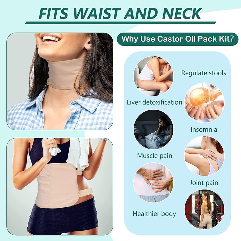 - 【Adjustable Waistband】 The castor oil pack is designed with adjustable taping so you can adjust it to fit your waistline perfectly and it's easy to handle. It is very secure and easy to put on and take off, allowing you to enjoy your castor oil pack without mess or spillage.