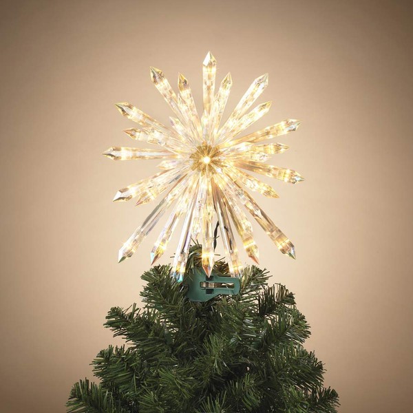 Gerson 2619000 Electric Lighted Glittered Acrylic Starburst Tree Topper with 50 Lights 13.5" H