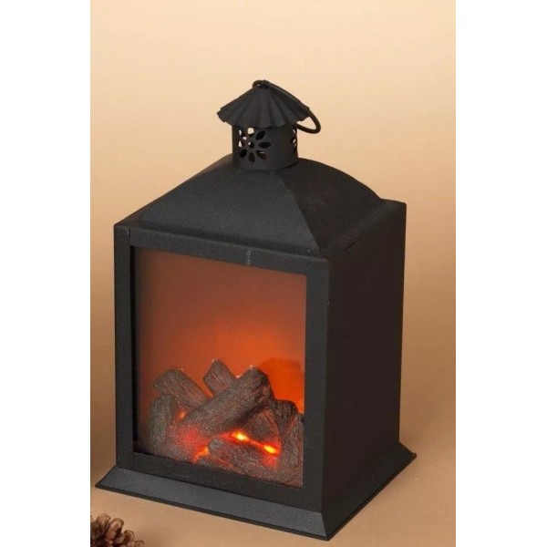 Gerson International 10.25" B/O LIGHTED METAL FIRE LOG LANTERN w/REALISTIC FLAME XMAS DECOR STYLE 2