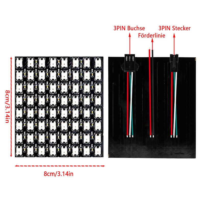 • Package includes: You will receive WS2812 RGB 8x8ECO 64Pixels LED Matrix Flexible Module *2 and accompanied by 11.5 cm wiring *2