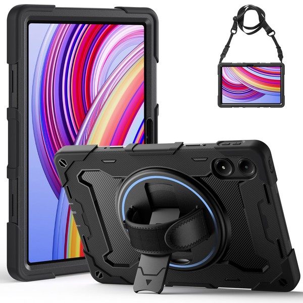- 【360° Drehbarer Ständer & Handschlaufe】Xiaomi Poco Pad Rugged Hülle mit 360 Rotating Stand bieten Ihnen die bequemste Multi-Winkel-Betrachtung und Tippen, verstellbare Handschlaufe Unterstützung Sie Tablet fest mit einer Hand zu halten, bieten mehr Idee für Lehrer, Ingenieur, Designer und mehr Benutzer