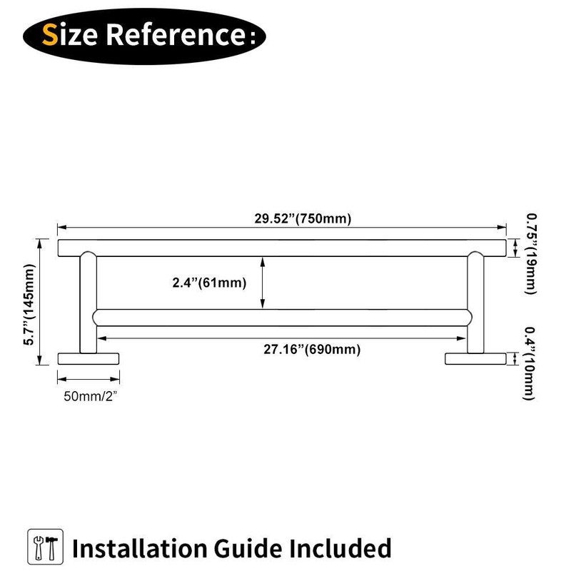 ✨ 30-Inch Bathroom Double Towel Bar SUS 304 Stainless Steel Bath Towel Bar Matte Black Modern Style Wall Mount ✨