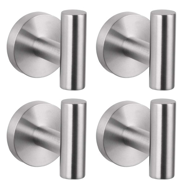 GERZWY Bath Towel Hook SUS 304 Stainless Steel Coat/Robe Clothes Hook for Bath Kitchen Modern Hotel Style Wall Mounted 4 Pack Brushed Finish