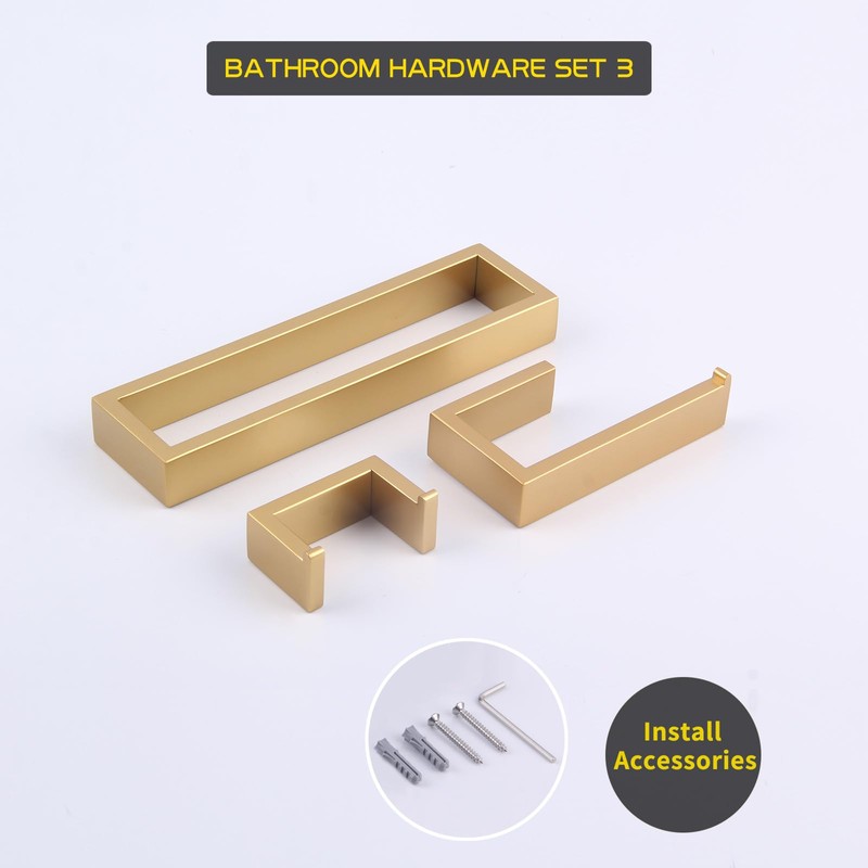 GERZWY Bathroom Accessory 3-Piece Set SUS 304 Stainless Steel Toilet Paper Holder Towel Ring Towel Hooks Wall Mount Gold Finished
