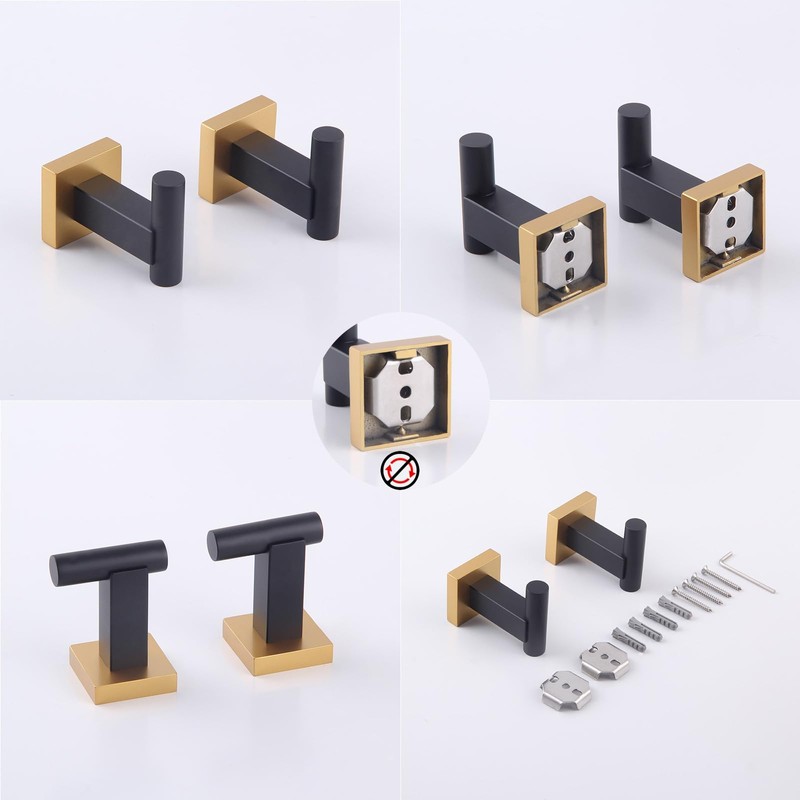GERZWY Stainless Steel Towel Hook Heavy Duty Wall Mounted Robe Coat Hook for Bathroom 2 Pack (Black & Gold)