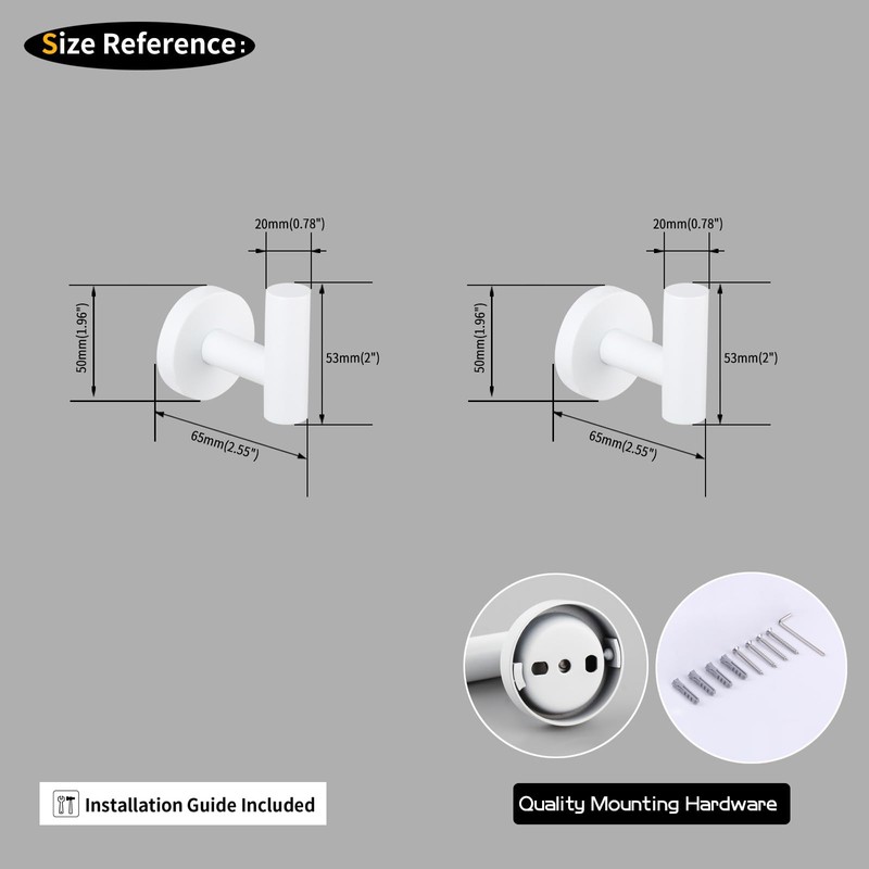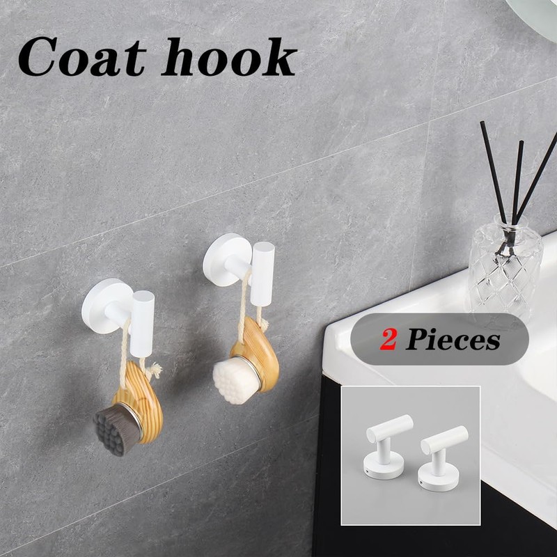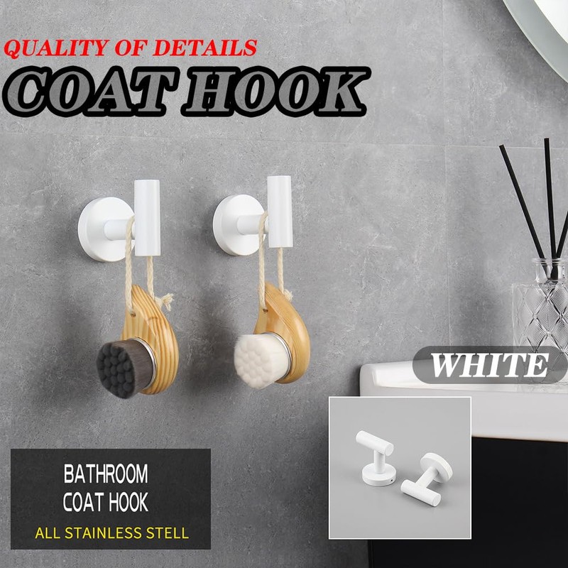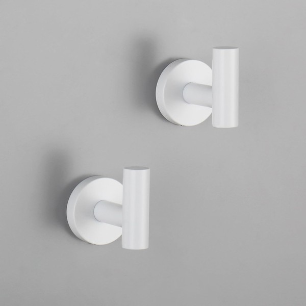GERZWY Towel Hook Stainless Steel Robe Coat Hook Wall Mounted Luxury Hooks for Bathroom Hotel 2 Pack, White