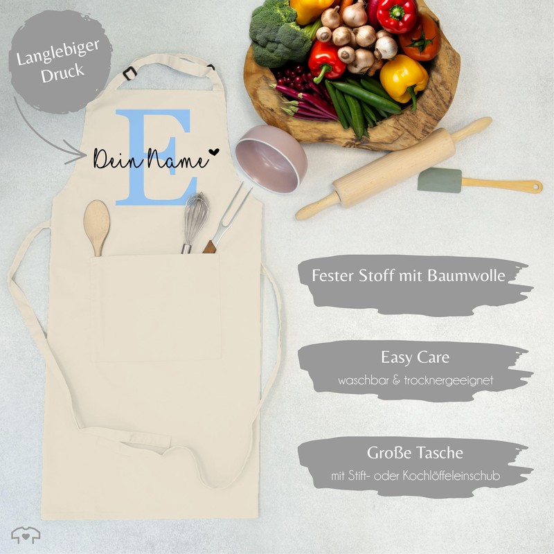 Geschenk mit Namen personalisiert by Shirtracer - Apron - and Initials - Customisable Name Letter Heart, 5 natural white