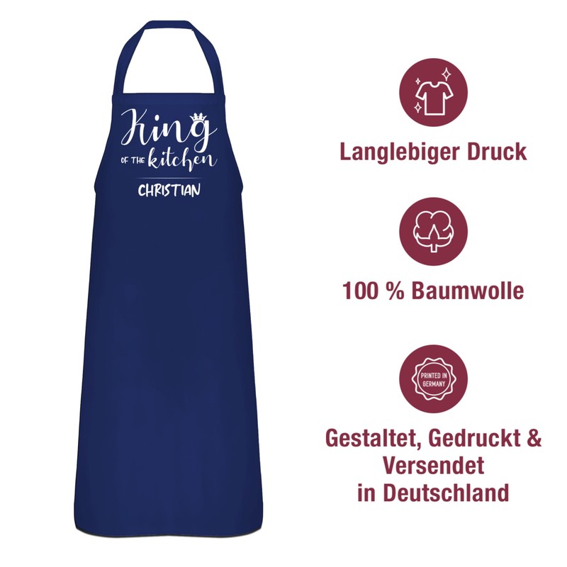 Geschenk mit Namen personalisiert by Shirtracer - Apron - Cooking Apron Men - King of the Kitchen with Name I Gift Cooking I Gift for Chefs, 3 Navy Blue