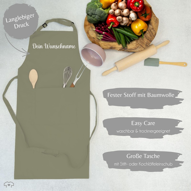 - Gift for cooks or hobby chefs: were you looking for "personalised women's green cooking apron as a gift idea for your little ones? Then this individual motif is guaranteed to be the right thing for you. is something very special and completes the lettering look. With this motif, you will definitely attract attention and make everyone shine