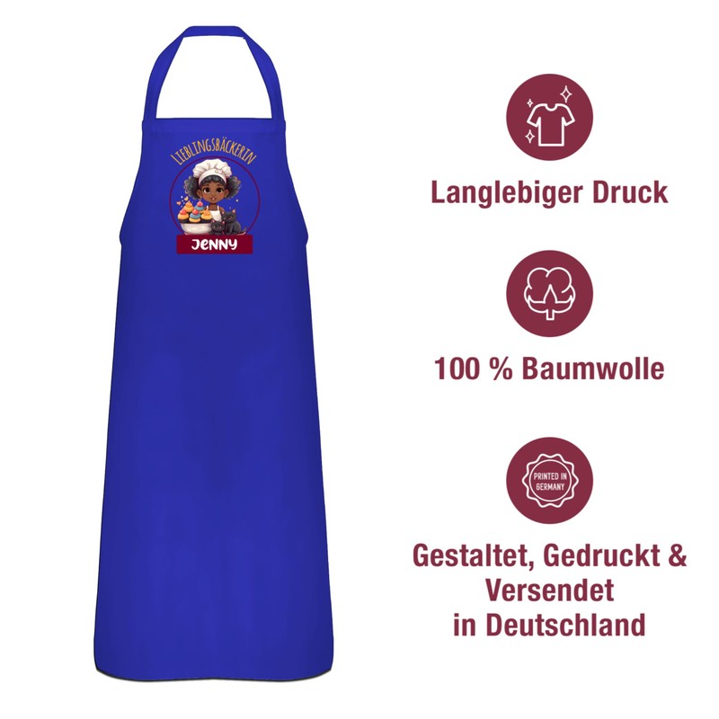 Geschenk mit Namen personalisiert by Shirtracer - Apron Gift Personalised with Name - Baking Apron Women - Favourite Baker with Name, 3 Royal Blue