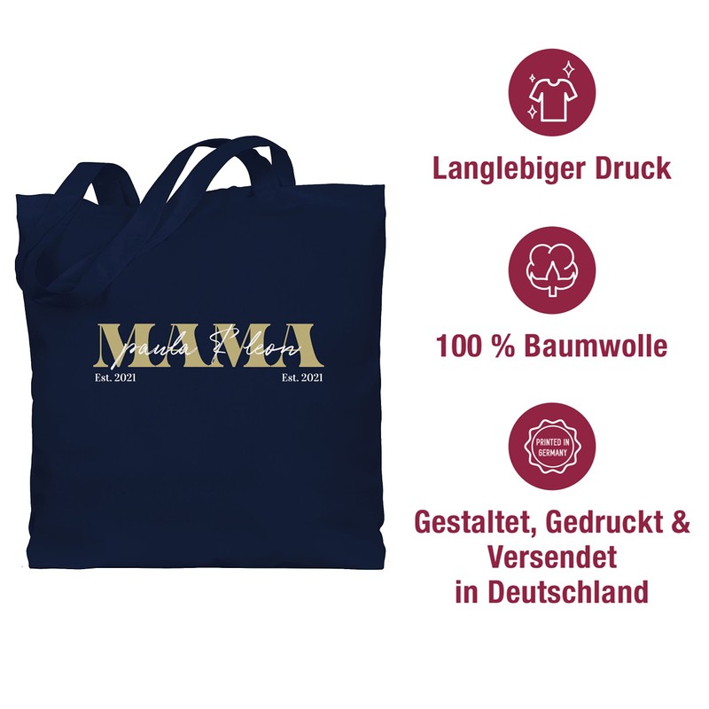 Geschenk mit Namen personalisiert by Shirtracer - Cotton Bag - Mum Gift with Name Children Date Birth Year Mother's Day Gift Mum Since, 2 Navy Blue, Unit size