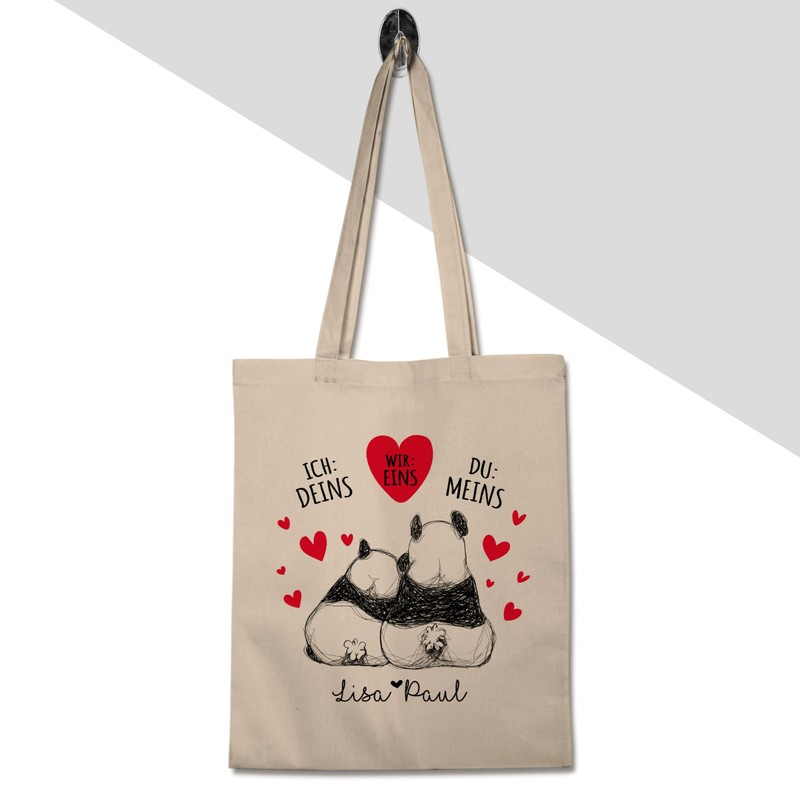 Geschenk mit Namen personalisiert by Shirtracer - Cotton Bag - Valentine's Day Partner Love - Panda Declaration of Love Valentine's Day Gifts with Name Gift Idea Couple Christmas Gift for, 1 natural