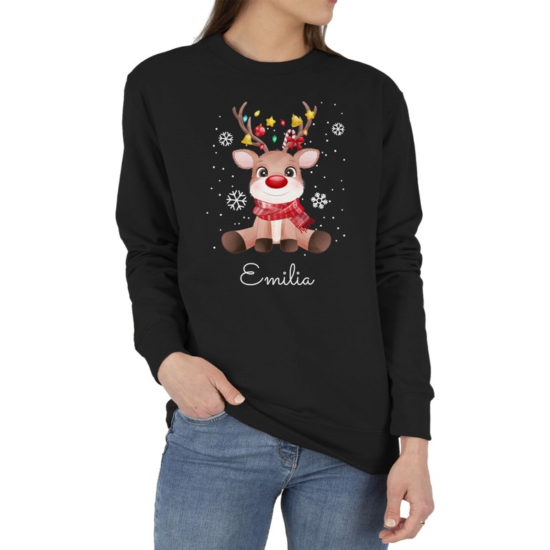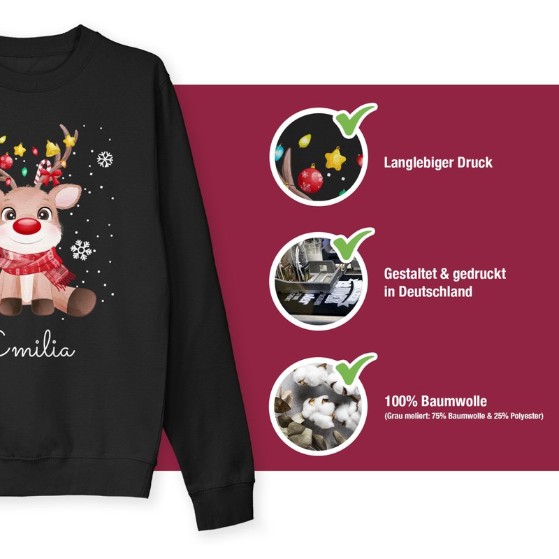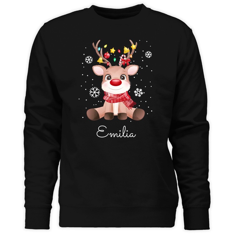 Geschenk mit Namen personalisiert by Shirtracer - Sweater Pullover Sweatshirt for Men and Women - Christmas - Cute Reindeer with Name of Your Choice, 2 Black
