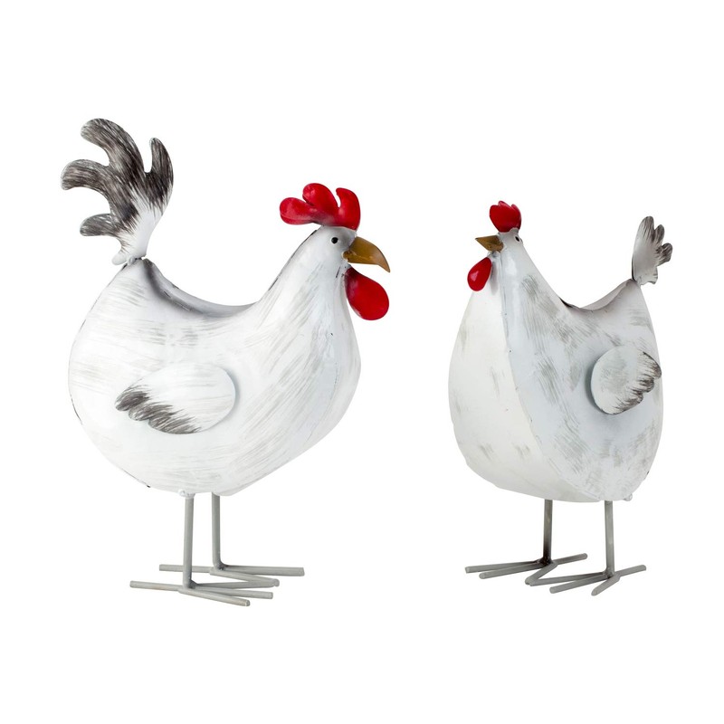 Geschenkestadl Rooster and Hen Metal Figures 23.5 cm