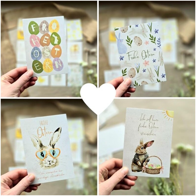 Geschenkhaltig Easter Cards Set of 12, Card Set for Easter, Stylish Postcards for Easter, Unique Easter Card Set
