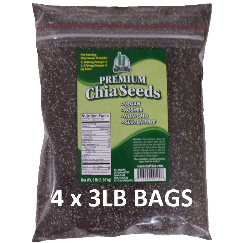 Get Chia Brand BLACK Chia Seeds - 12 TOTAL POUNDS = FOUR x 3 Pound Bags