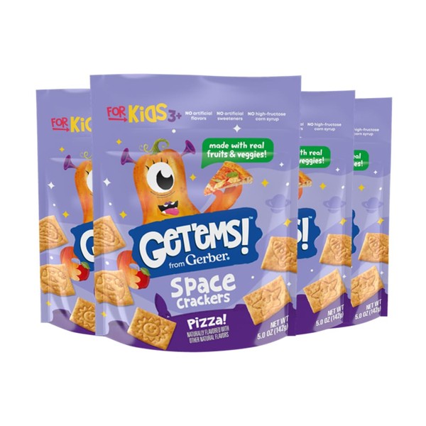 - BLAST OFF INTO THE UNIVERSE OF YUMMY GOODNESS: Our Get’ems! from Gerber Pizza Space Crackers, crafted with real fruits, veggies, and playful cosmic shapes, offer a galaxy of tasty nutrition in every bite