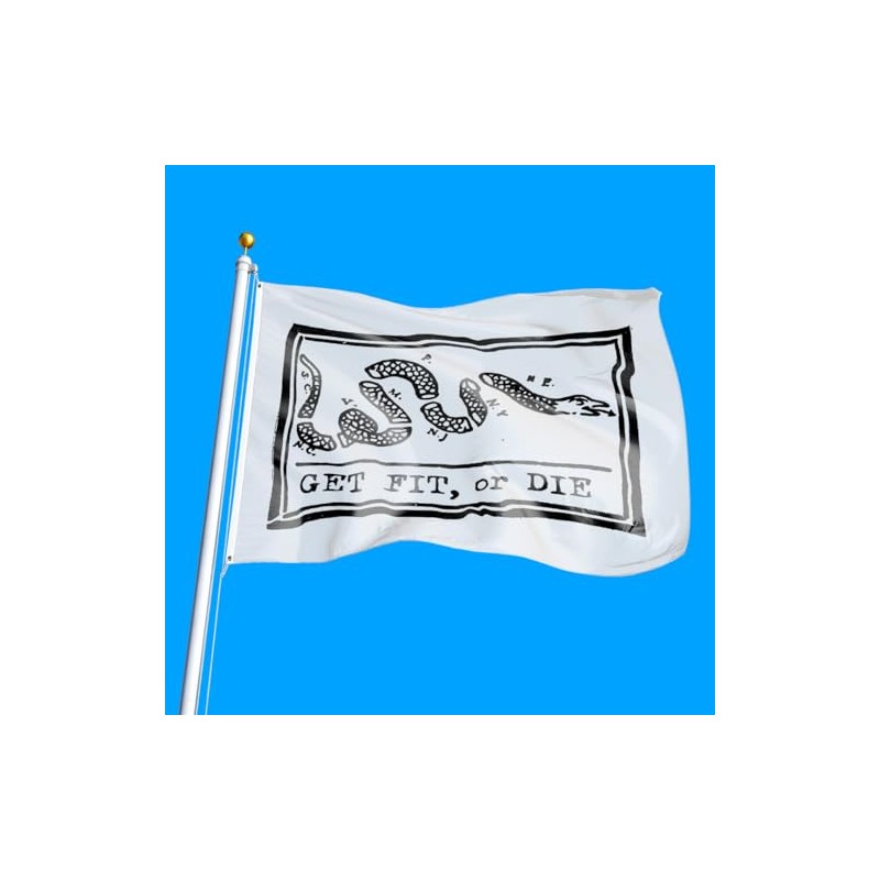 - The "Get Fit, or Die Flag" draws inspiration from the iconic "Join, or Die" design, reimagining it for modern enthusiasts. This clever adaptation transforms a historical symbol into a powerful motivational tool for your personal space. The bold text and striking imagery serve as a constant reminder of your goals, pushing you to stay committed to your journey.