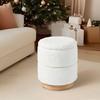 - ✅【Superior Quality and Stability】Our Storage Ottoman features a removable cover and wooden base. High density foam seat cushion, and the surface of ottoman is covered with special boucle fabric, which is providing a great comfortable seating experience. This cylindrical fluffy ottoman with storage can hold a weight of up to 220 lbs. Its exceptional load-bearing capacity and structure ensure that it remains stable.