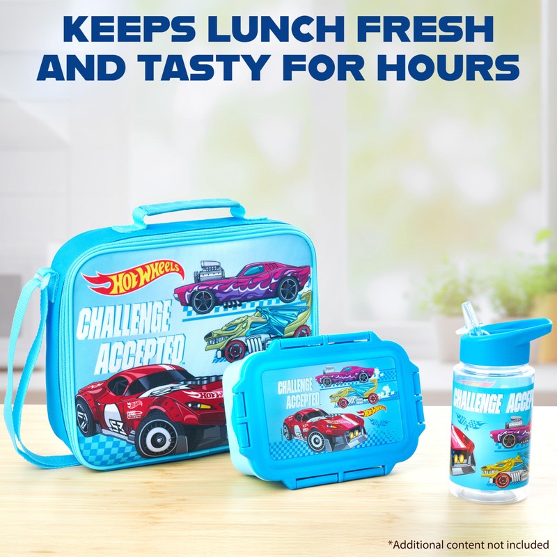 Get Trend Hot Wheels Water Bottle Lunch Bag and Lunch Box Kids Set 3 Pcs School Supplies Bento Snack Box BPA Free Leakproof for Travel (Blue Hot Wheels)
