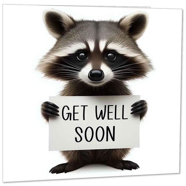 Get Well Soon Card - Raccoon - Speedy Recovery 145x145mm