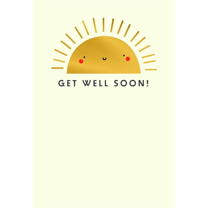 Get Well Soon Greeting Card with Smiling Sun Design, Cheerful Message