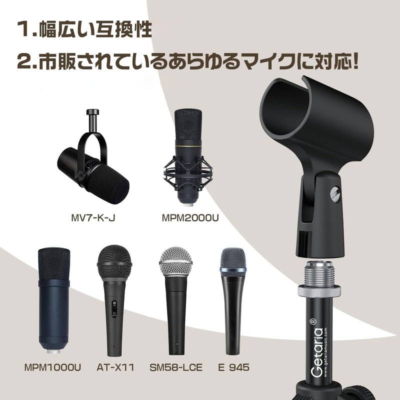 • COMPATIBLE WITH VARIETY OF MICS: Compatible with dynamic microphones such as ATR2100-USB, AT2005-USB, Samson Q2U, Behringer Xm8500, SM58-LC PGA48/PGA58 etc. Please make sure one of the three legs is in front of the microphone, otherwise it will tip over. It supports a maximum weight of 5.5 lbs and balances the placement of the microphone