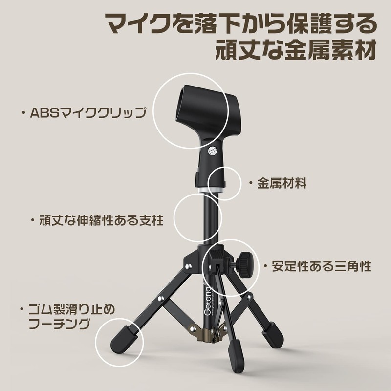 Getaria Desktop Microphone Stand, Mini Microphone Stand for Tabletop Condenser Microphone, Microphone, Tabletop Tripod Stand, Foldable, Bracket, Holder, Microphone Compatible (MTD-01)