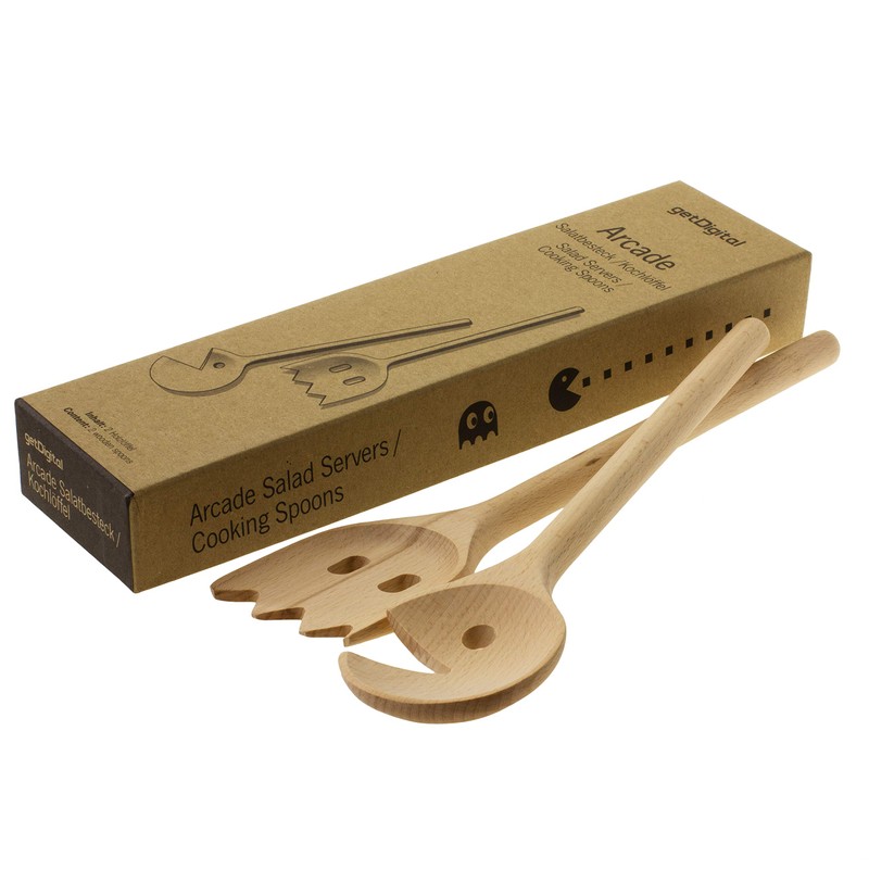 getDigital Retro-Kochlöffel aus dem Arcade Universum - Salatbesteck aus Buchenholz - Hochwertige Holz-Löffel für Nerds & Fans, 30,5 x 7 x 1 cm, 2-Einheiten