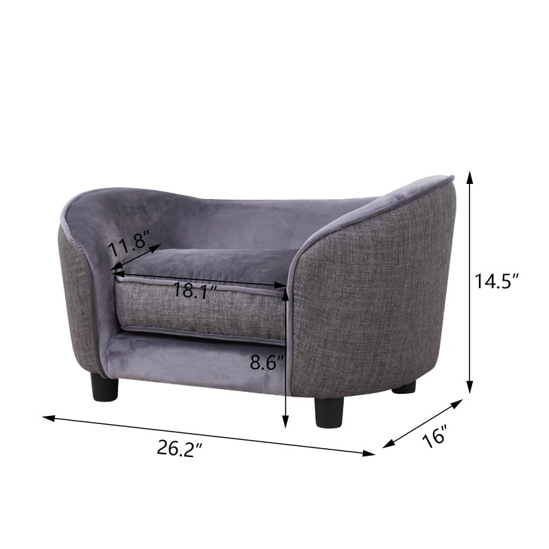 Please make sure this pet sofa fits your pet cats or small dogs before you buy. Pet sofa size is 26.2*16*14.5 inches.