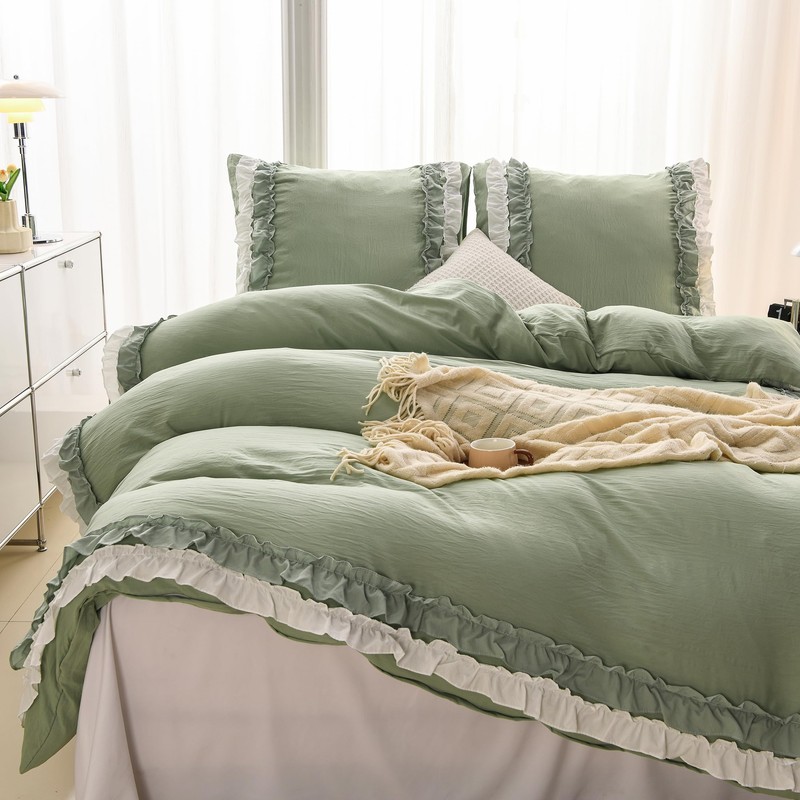 - With exquisite double-layer ruffles: exquisite double-layer ruffle design, make your plain bedding set look more romantic and unique. Stand out with its simplicity and elegance. Suitable for many different room styles. Suitable for all seasons.
