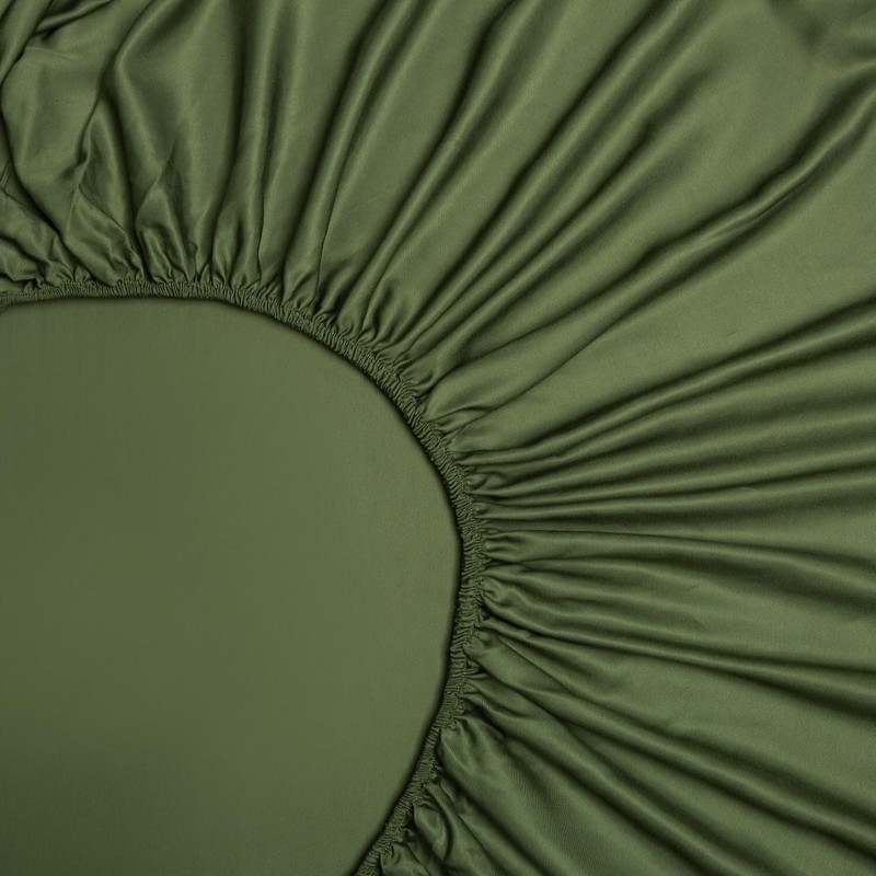 Geuz Bamboo Fitted Sheet 160 x 200 cm Green Olive Green Antibacterial Soft Fitted Sheets Cooling Bamboo Box Spring Bed Sheet Fitted Sheet 160 x 200 cm for High Mattresses up to 15-30 cm