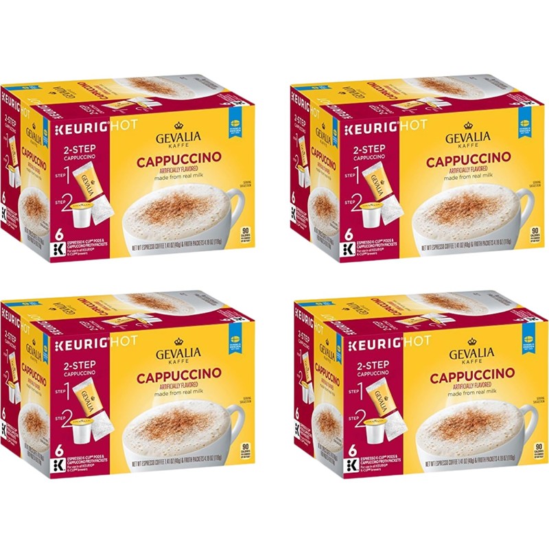 Gevalia Cappuccino Keurig K Cup Pods with Froth Packets 5.98oz (24 Count, 4 Boxes)