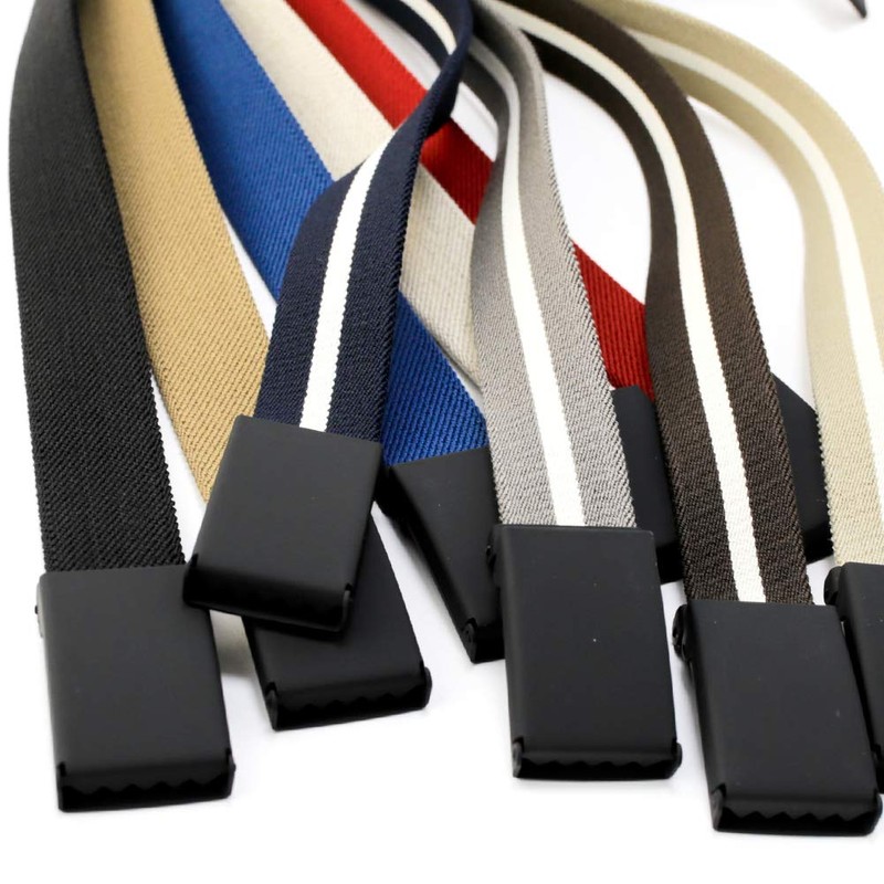 Gevard Men's Women's Custom Made Matte Black Buckle Stretch Belgian GI Belt Made in Japan Stretch Fabric Belt Solid Color, One Line Dark Brown