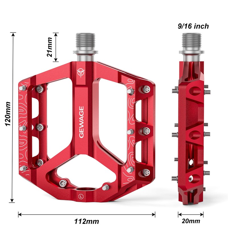 GEWAGE MTB Pedals Bicycle Pedals Set - Flat Pedals for Mountain Bike & Gravel Bike, Non-Slip & Durable, Aluminium Alloy, CNC Machined, 9/16 Inch Axle, Easy Installation (Red)