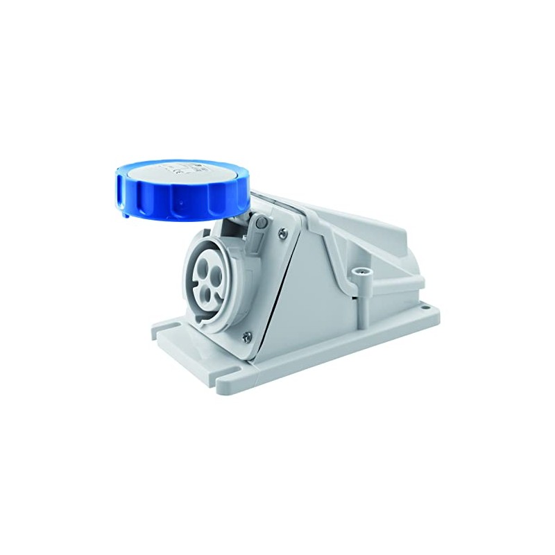 Gewiss GW62499 Low Voltage Screw Wiring 90 Degree Angled Surface-Mounting Socket-Outlet, IP67, 2P+E Pole, 200V-250V, 16 A, 50 Hz/60 Hz, Blue