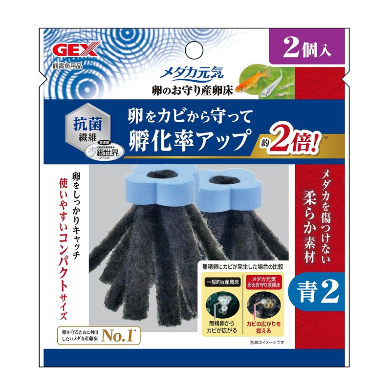GEX Medaka Genki Egg Amulet Spawning Bed, Prevents Egg Mold, Special Fiber, Blue, 2 Pieces