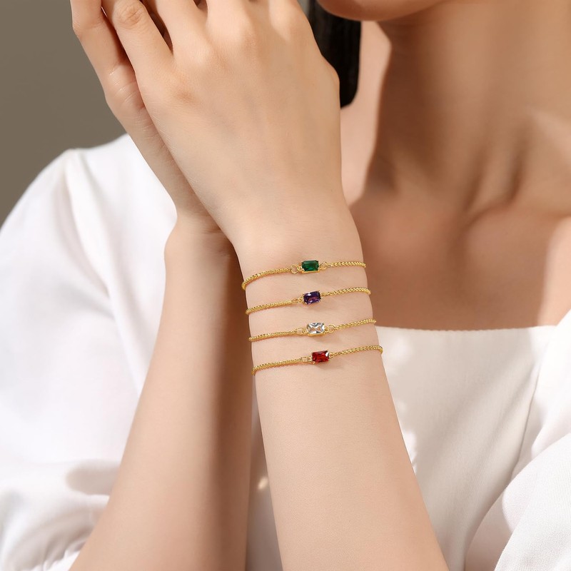 - Dainty Gold Birthstone Bracelet: With its simple design, the birthstone bracelet is the perfect addition to any style of clothing. And it is a simple piece that complements any look on any occasion, for everyday, date, work or formal wear.