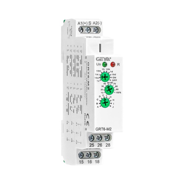 GEYA 10A Multifunctional Delay Time Relay 10 Function Choices AC/DC24V-240V 2 Output Control Relay with DIN Rail Mount (GRT6-M2,AC/DC24V-240V)